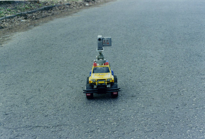 The video camera mounted on a small car